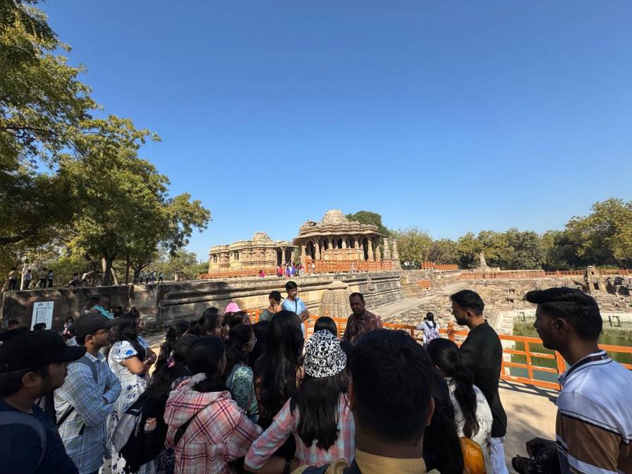 On 28th January, they visited the Modhera Sun Temple and Patan Stepwell, followed by an evening at Kankariya Lake. The next day, 29th January, was dedicated to Gandhinagar, where students explored the Sardar Vallabhbhai Patel National Memorial, Akshardham Temple, Craftsman Village, Adalaj Stepwell, and Ahmedabad-ni-Gufa, ending the day with a DJ Night at the hotel.